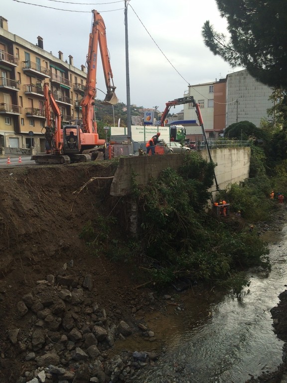 Lavori in corso in via Nazionale Piemonte a Savona. Tali operazioni sono state rese necessarie per risolvere le criticità dovute alle forti piogge cadute tra venerdi 14 novembre e sabato 15 novembre.
