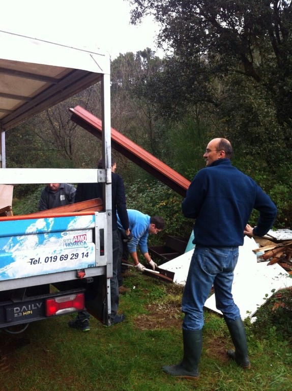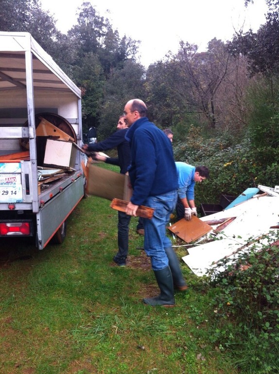 Il sindaco Frascherelli, gli assessori Casanova, Guzzi e alcuni cittadini al lavoro per ripulire un angolo della Manie dai rifiuti abbandonati da qualche persona incivile