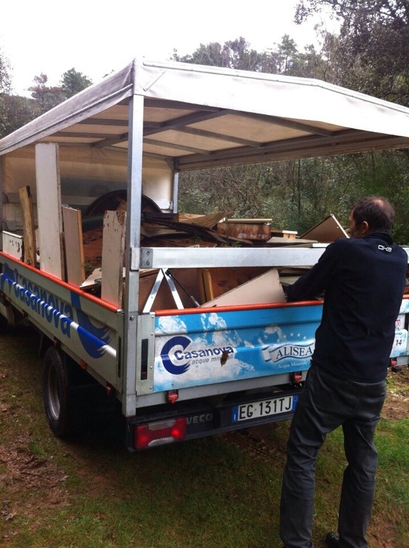 Assi di legno, mobili rotti, tavole spezzate a metà e rifiuti vari, un angolo della Manie di Finale Ligure trasformato in discarica abusiva.
