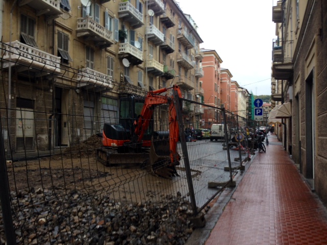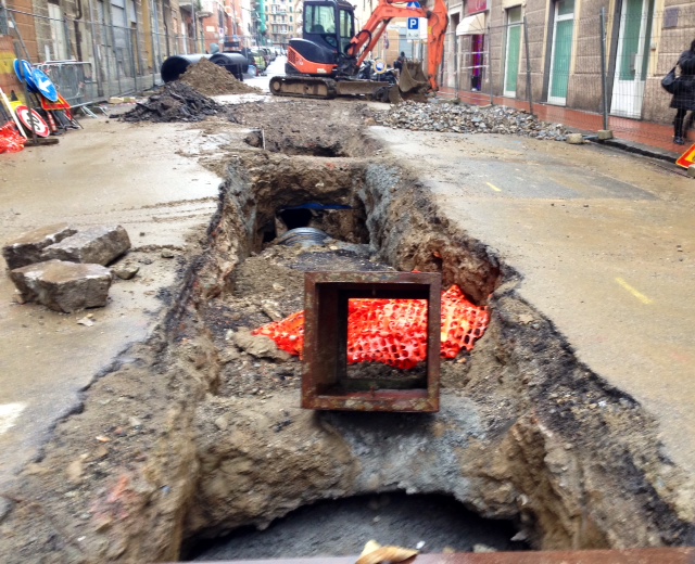 Lavori in corso in via Milano a Savona. L'intervento è stato reso necessario a causa di un cedimento strutturale della canalizzazione delle acque bianche, all’altezza del civico n. 1, provocato dalle forte piogge cadute lo scorso 15 novembre.