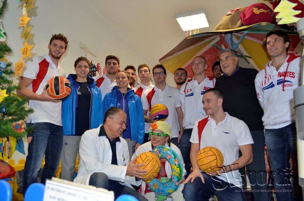 Oggi la Rari Nantes Savona ha fatto visita ai piccoli pazienti del reparto Pediatria dell'Ospedale San Paolo diretto dal Primario Cohen. I bambini sono stati omaggiati di palloni autografati e piccoli gadget della squadra.