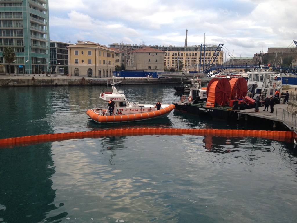 Intervento questa mattina della Capitaneria di Porto a Savona. La presenza è stata resa necessaria a seguito del rilevamento di una evidente iridescenza di prodotto probabilmente inquinante nello specchio acqueo di Savona.