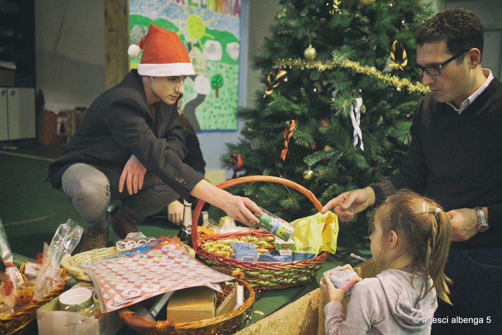 In occasione delle feste natalizie gli esploratori e le guide (gli scout dai 12 ai 16 anni) del gruppo A.G.E.S.C.I. (Associazione Guide e Scouts Cattolici Italiani) Albenga 5 hanno organizzato una serata natalizia di raccolta fondi per autofinanziare le proprie attività.