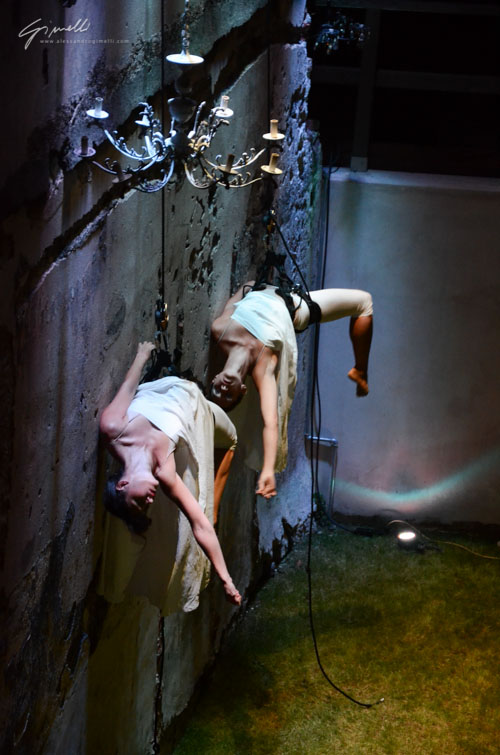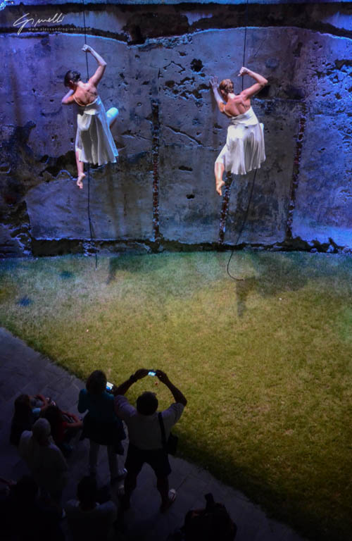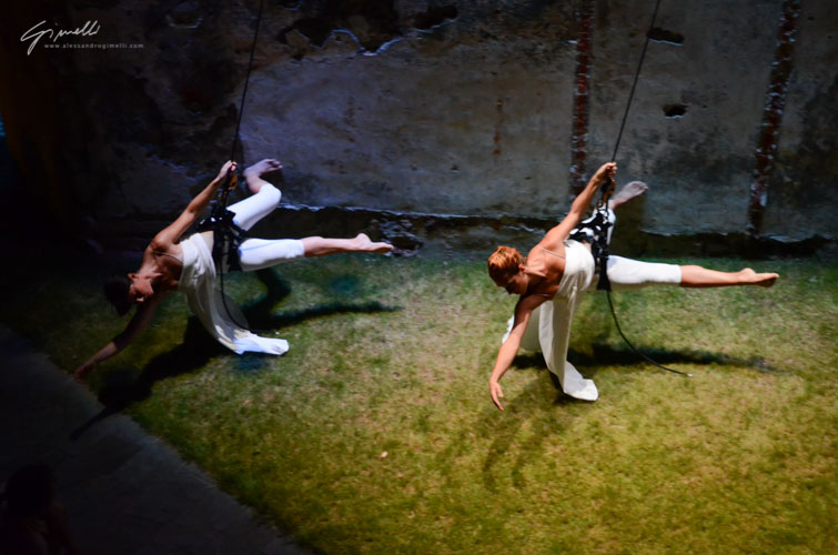Le ballerine Lucia Folco e Roberta Calcagno si cimenteranno in una coreografia aerea, che avrà come palcoscenico la facciata di una palazzo. La danza verticale è una nuova tipologia di danza, che vede i ballerini danzare sospesi, dando vita a uno spettacolo di grande suggestione, basato su una concezione innovativa dello spazio e del movimento.