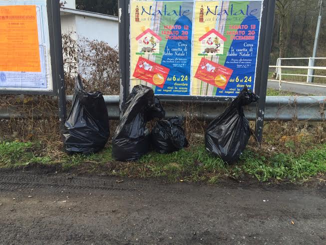 Spazzatura abbandonata a bordo strada in via Romana a Cairo Montenotte.