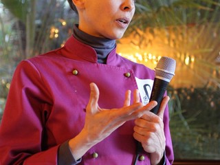 * Terry Prada del Ristorante Busciun di Castelvittorio di Imperia, che ha parlato della cucina dell'entroterra, spiegato la ricetta del turtun, che ha proposto in tre versioni, una tradizionale ed una con cavolo nero e porri cotta nel forno a legna e infine una una vegana senza