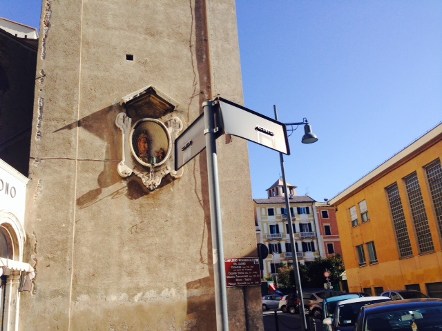 La segnaletica in via Verzellino fa riferimento al percorso storico e artistico della famiglia Brea, un progetto voluto dalla Regione Liguria, in collaborazione con Conseil General des Alpes Maritimes