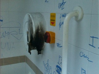 Graffiti e sporcizia nei bagni: foto e segnalazione di un lettore