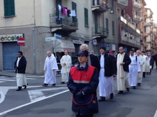 Anche quest’anno la Madonna di Misericordia è pronta ad accogliere tra le braccia i fedeli in processione. La ricorrenza votiva verso la Basilica del Santuario è partita questa mattina alle 7 dal Duomo di Savona guidata dal vescovo Monsignor Vittorio Lupi, dal sindaco di Savona Federico Berruti e dalle autorità cittadine. A seguire i fedeli e le confraternite. Oggi, infatti, mercoledì 18 marzo, ricorre il 479° anniversario dell’apparizione della Madonna di Misericordia, patrona della città di Savona e della Diocesi di Savona-Noli. La processione percorrerà, dalla cattedrale, le vie del centro e la provinciale che risale la valle del Letimbro.