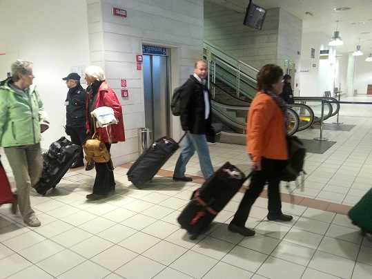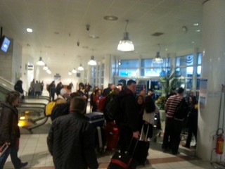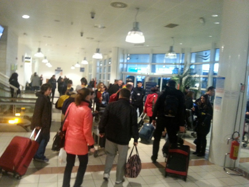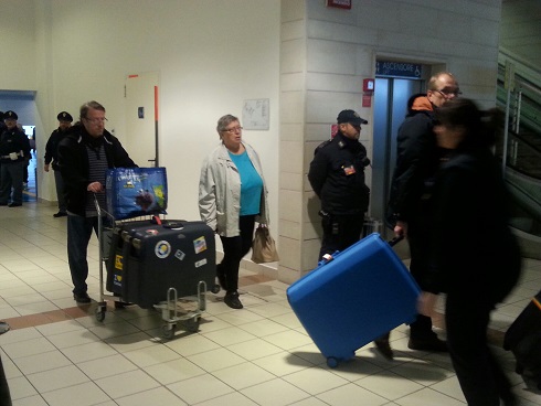 I giornalisti vengono tenuti lontano dal passaggio dei passeggeri, che vengono poi fatti salire sui pullman. Tutti scendono in silenzio, come in una sorta di religiosa intimità