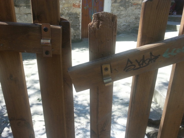 Oltre ad essere stato divelto il fermo che permetteva di chiudere il cancello, la sbarra di legno nel quale è incassato è totalmente storto, così come la porta di ingresso: a prima vista sembra che qualcuno si sia seduto sopra danneggiandola seriamente.