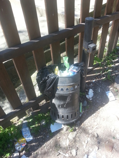 Accanto al cancello c’è poi il bidone, che si è staccato di netto dal sostegno, stracolmo di spazzatura: in tutta l’area comunque sono disseminati rifiuti. La staccionata risulta poi rovinata in più punti
