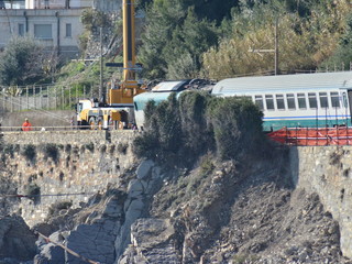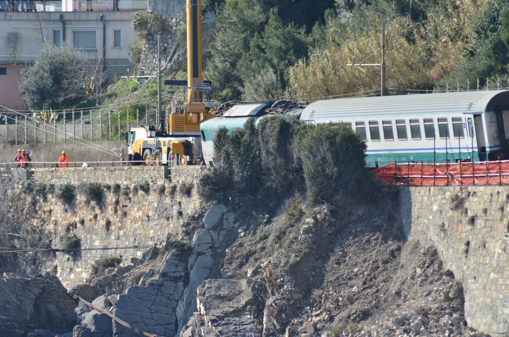 Era il 17 gennaio 2014 quando, a causa del cedimento strutturale di una villetta, una frana cadde sulla linea ferroviaria Savona-Ventimiglia, causando il deragliamento di un treno intercity e la conseguente sospensione di qualsiasi servizio. Fortunatamente nell’incidente non vi furono feriti gravi, ma per 39 giorni, sono al 24 febbraio 2014, la Liguria fu letteralmente divisa in due. Dopo opportune valutazioni fu deciso per la rimozione dei convogli deragliati via mare, operazione di cui venne incaricata la Vernazza Autogru.