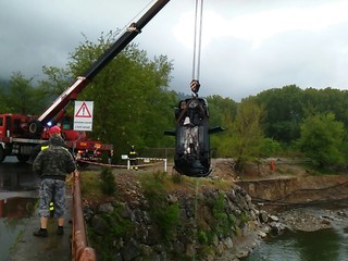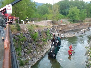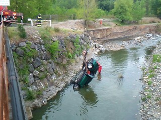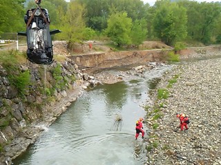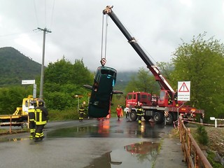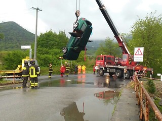 Spettacolare intervento dei vigili del fuoco di Albenga questa mattina a Villanova per il recupero di una vettura caduta nel fiume.