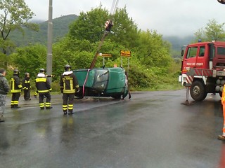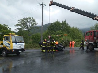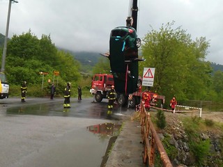 FOTO E VIDEO - I pompieri sono intervenuti sul posto con l'autogru, ma fortunatamente non c'era nessuno all'interno
