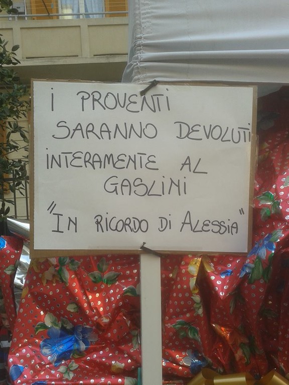 La somma sarà devoluta, come da espressa richiesta della famiglia di Alessia, all'Ospedale Gaslini di Genova.