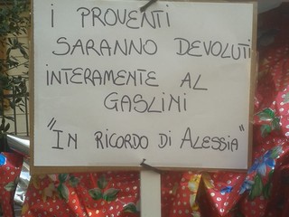 La somma è stata ricavata dalla Festa di Primavera che i Garosci de Pia hanno organizzato il 4 aprile a Finalpia, grazie alla lotteria e ad alcuni giochi. La festa, che ha visto la partecipazione del gruppo savonese Blue Scarlet è stata da subito dedicata ad Alessia, come è stato ricordato dal palco prima di uno struggente momento di silenzio.