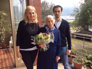 "Il consigliere Emanuela Picasso porta in dona un mazzo di fiori - a nome dell'amministrazione comunale - al domicilio di Eufemia a Bastia accolta da figli e nipoti".