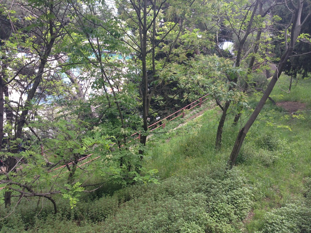 Data l’assenza per buona parte di via Famagosta dei marciapiedi, la scala consente un passaggio sicuro che porta sull’Aurelia e al centro cittadino.