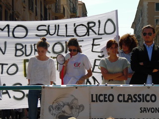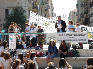 Oggi in piazza Sisto IV la manifestazione degli studenti del liceo classico "G. Chiabrera" di Savona e del liceo classico-scientifico "Giordano Bruno" di Albenga contro il provvedimento provinciale che impone la chiusura degli istituti il sabato