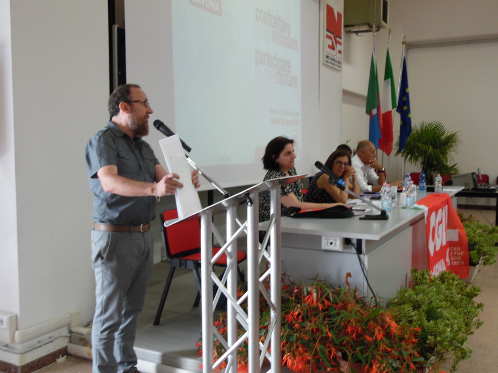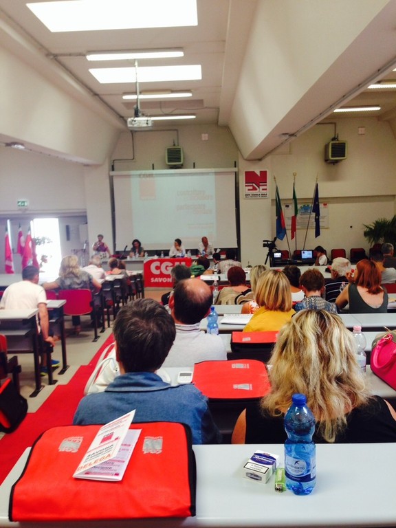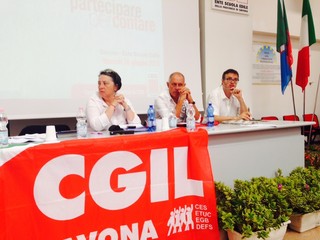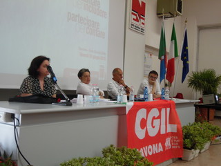 Ad introdurre il segretario generale della CGIL di Savona, Giulia Stella: "L’incontro si svolge nell’ambito di una conferenza nazionale che vede coinvolte tutte le Camere del Lavoro d’Italia: il tema forte è quello della contrattazione e della partecipazione di tutto il mondo del lavoro, rivolta non solo a chi ha una occupazione classica a tempo indeterminato con i canoni della regolarità, ma in particolare alla categoria rappresentata dagli atipici. Abbiamo bisogno di unificare la tipologia lavorativa e le tutele. E’ quindi indispensabile che il sindacato riprenda il ruolo contrattuale, anche attraverso nuove forme quali la contrattazione di sito e la contrattazione sociale, al fine portare avanti la difficile opera di uniformazione delle tutele dei lavoratori e di diritti dei cittadini”.