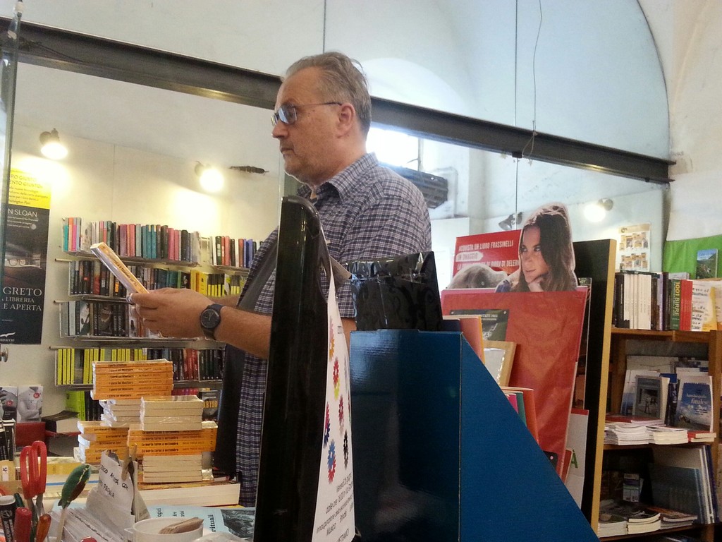 Il conte Uguccione a Finale Ligure. Ieri pomeriggio turisti e residenti hanno notato l’artista Bebo Storti passeggiare per le vie del centro della cittadina rivierasca. L’attore comico e teatrale è noto per i suoi personaggi televisivi Alfio Muschio, Thomas Prostata e il Conte Uguccione fatti vivere in programmi come “Mai dire Gol” e “Su la testa!”. Storti è stato immortalato all’interno della storica libreria Centofiori di via Ghiglieri a Finale Ligure, punto locale di riferimento culturale. L’attore è un habitué del paese: capita infatti spesso di vederlo camminare nel budello.
