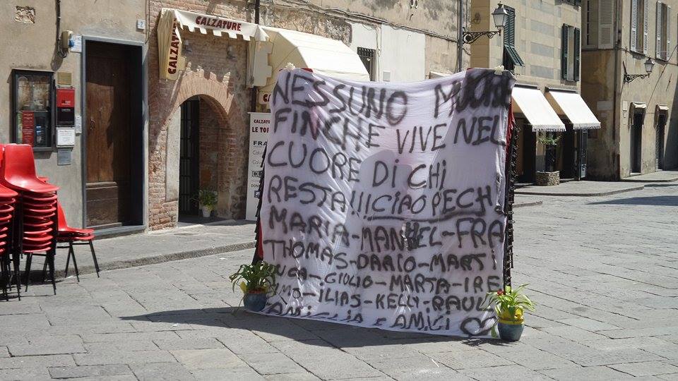 "Nessuno muore se vive nel cuore di chi resta". Con questo striscione gli amici hanno voluto salutare per l'ultimo volta Christian Pace.