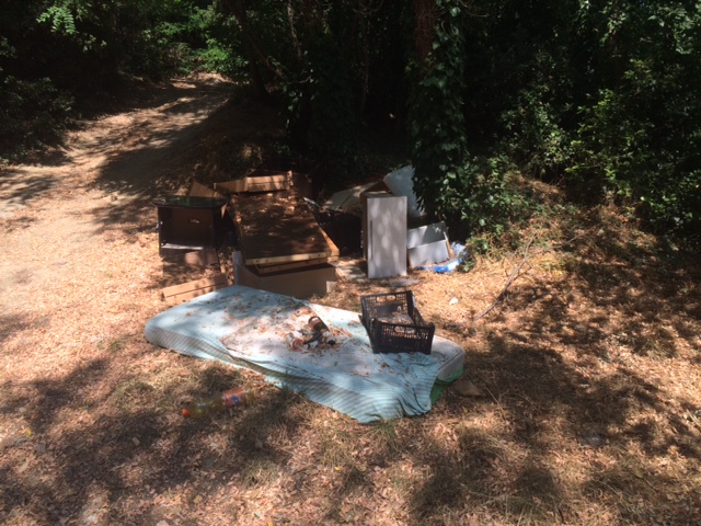 Il “catalogo” degli abbandoni è vario e comprende oggetti di ogni tipo: arredamenti in legno comprendete un grosso armadio, due televisori, un materasso e spazzatura varia come bottiglie di birra in vetro, cartacce e una cassetta per la frutta.