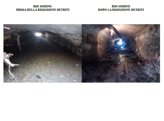 - Pulizia con rimozione detriti alluvionali dei tratti tombinati del rio Sodino dalla foce a Via Durazzo ;