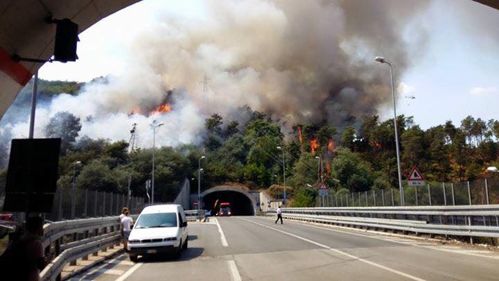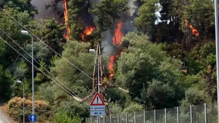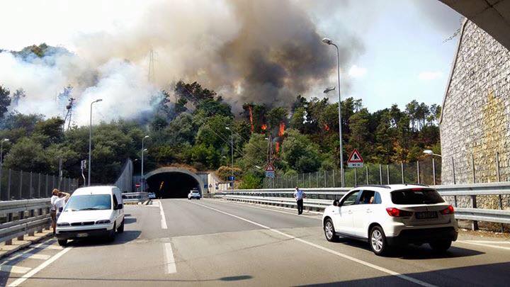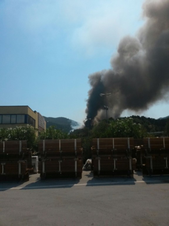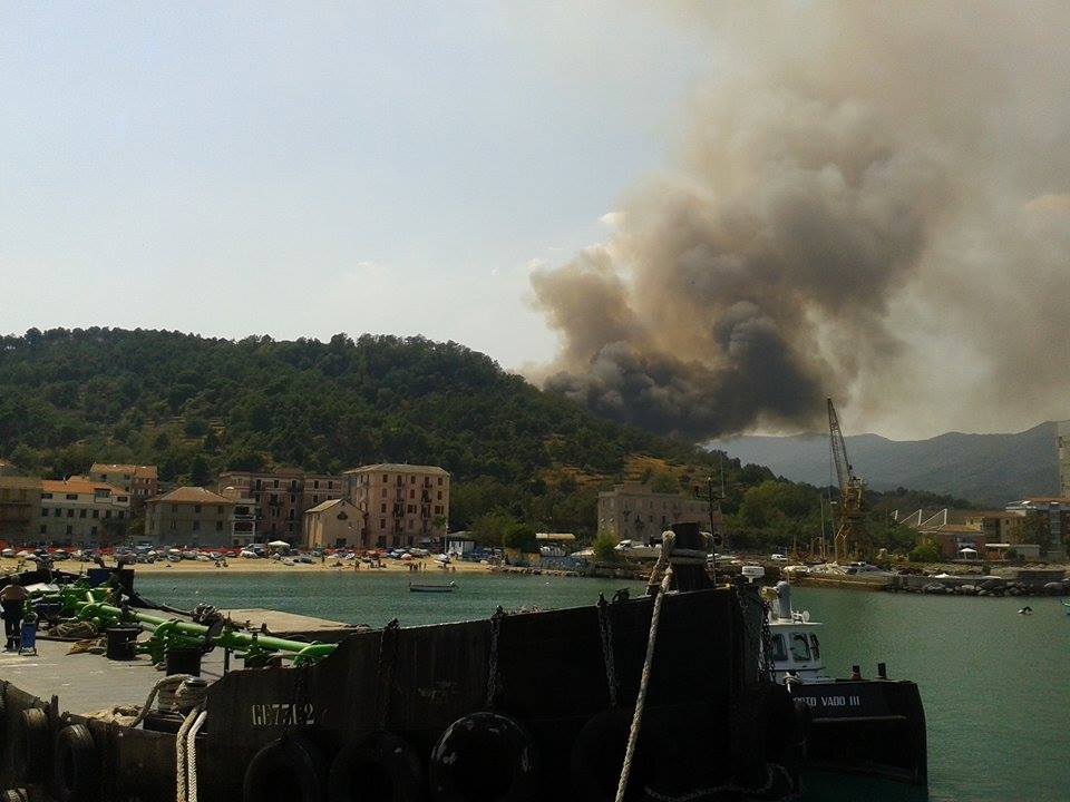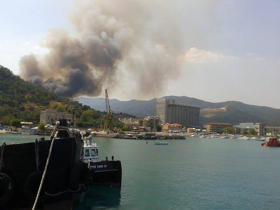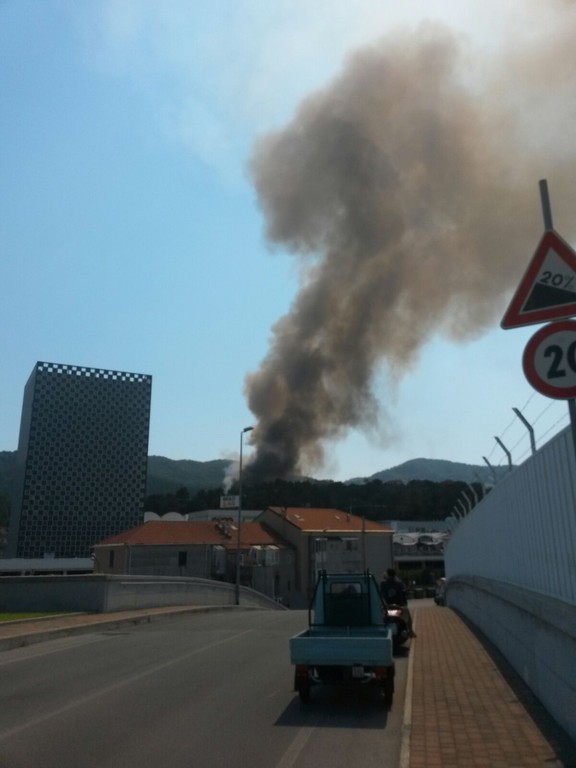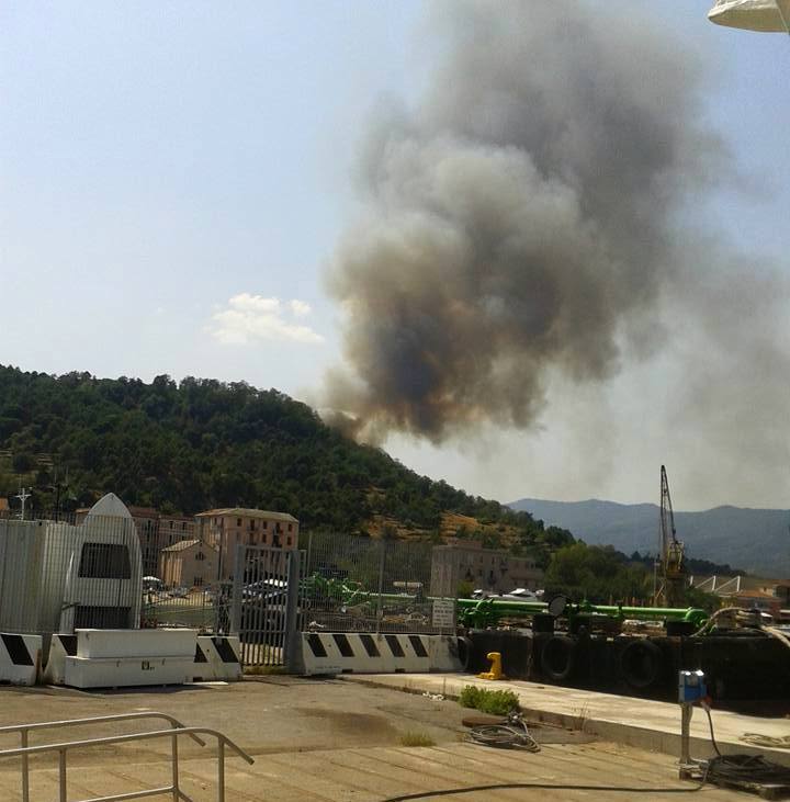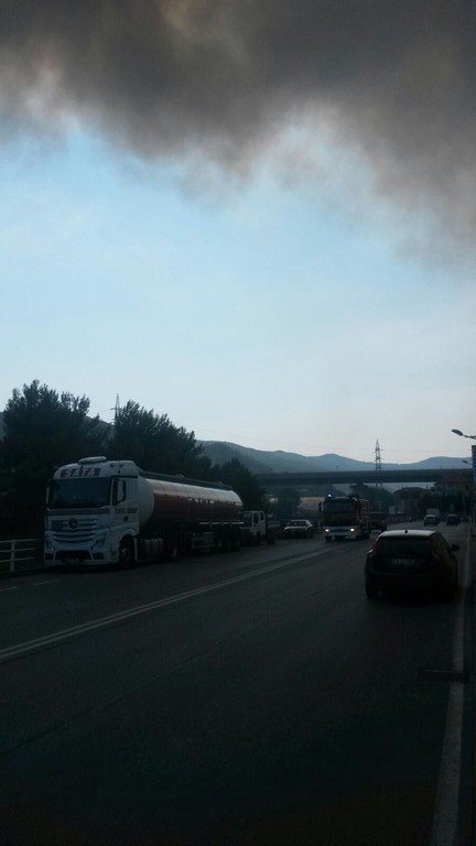 Vado, incendio alle spalle del Molo 8.44, chiusa la superstrada: foto e video