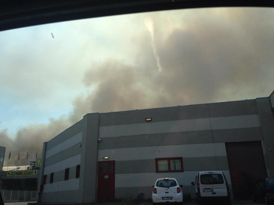 Le fiamme alle spalle dell'Interporto VIO. Continua a lavorare incessantemente la macchina dei soccorsi