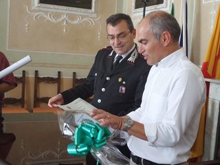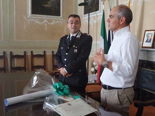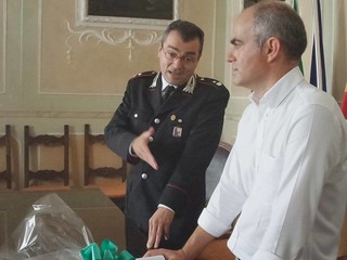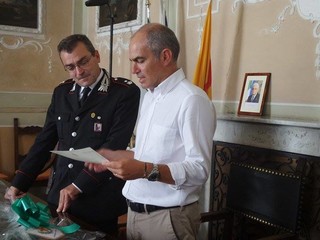 Con la consegna di una pergamena il sindaco di Albenga, Giorgio Cangiano, a nome di tutto il comprensorio ha voluto ringraziare il Maggiore per quanto fatto fino a questo momento per contrastare la criminalità.