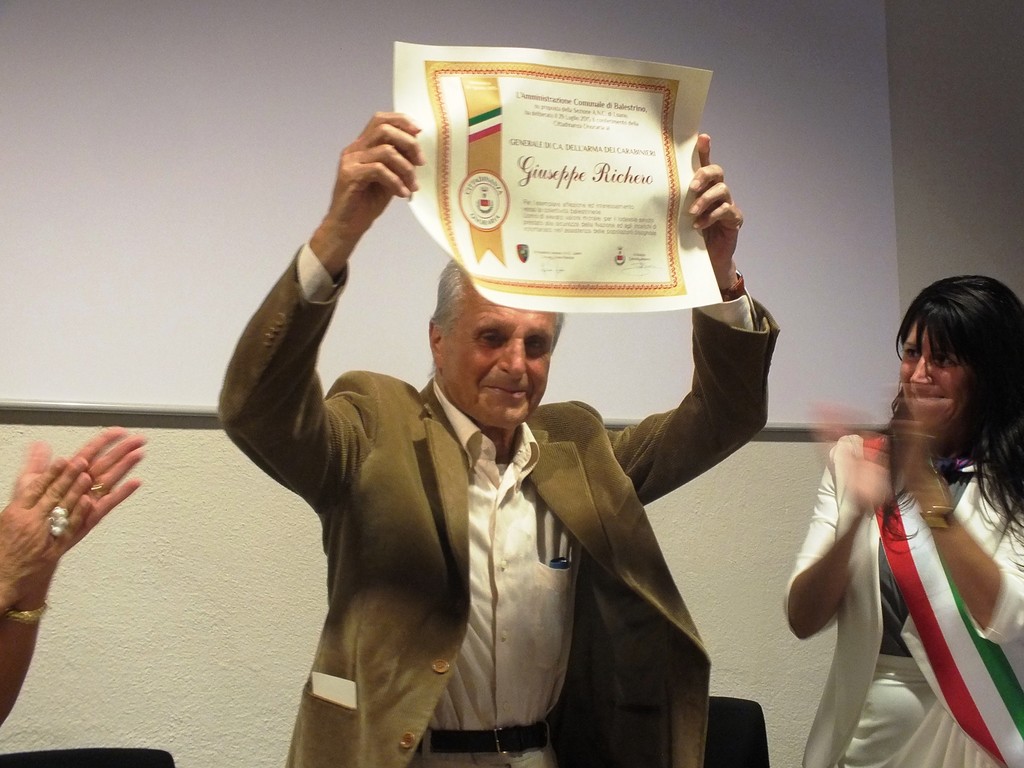 Domenica 30 agosto 2015, alle ore 17,00, nella sala consiliare del Comune di Balestrino, si è svolta la cerimonia di concessione della cittadinanza onoraria al generale C.A. Giuseppe Richero, per la sua brillante carriera militare e per il suo impegno nel sociale, sia per l’Associazione nazionale Carabinieri sia per la comunità di Balestrino.