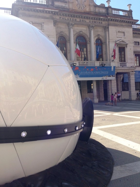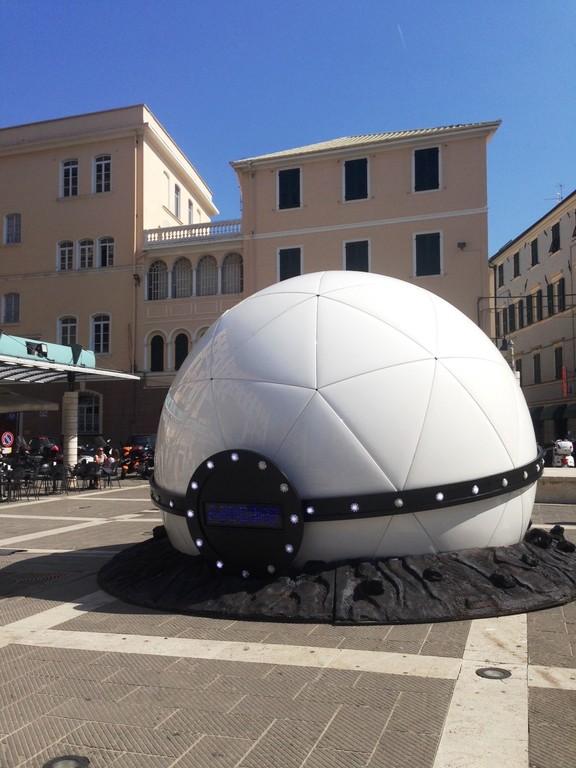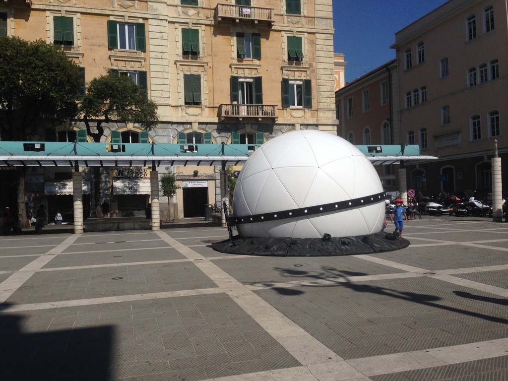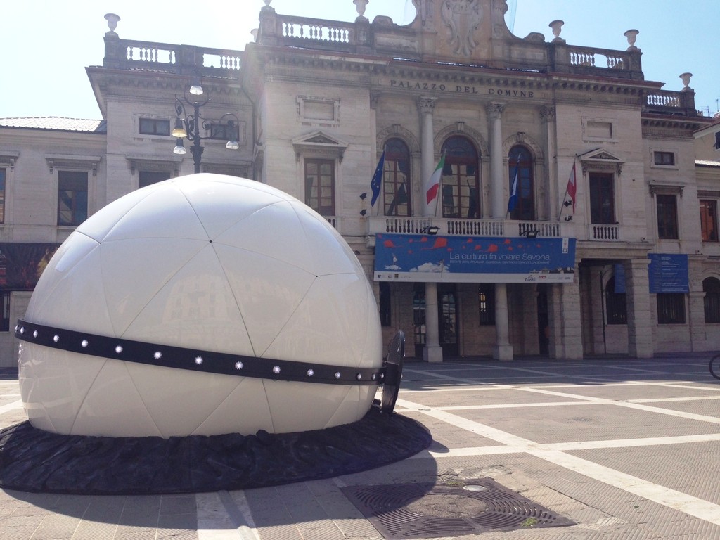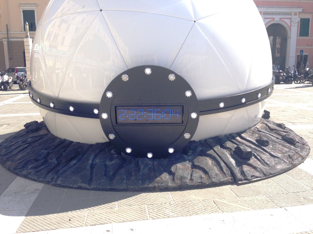 In molti ci stanno girando intorno per capire di cosa si tratta, un'astronave, un pallone gigante? E' atterrato in piazza Sisto IV a Savona questa mattina e ha incuriosito cittadini e passanti del centro storico, una sfera incastonata per metà nell’asfalto con un orologio elettronico che scandisce il countdown.