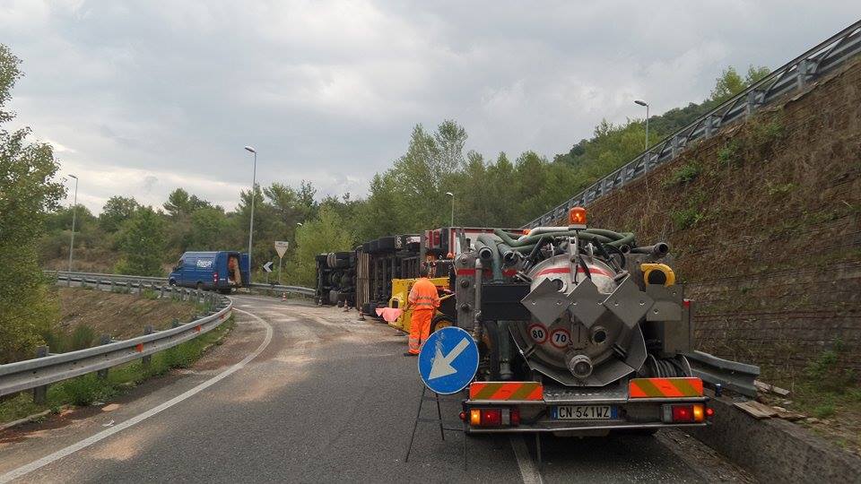 Attualmente chiusa la rampa dell'Aurelia bis che da Villanova conduce ad Albenga per permettere le operazioni di rimozione del camion che nella serata di ieri si è ribaltato.
