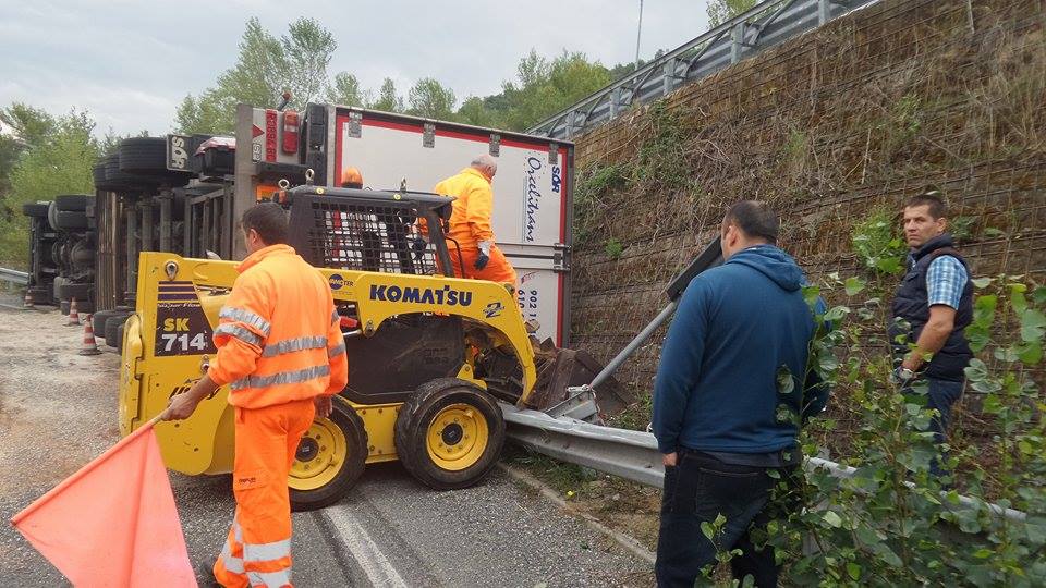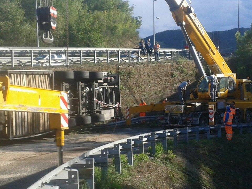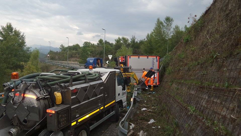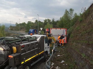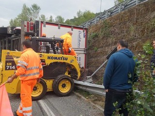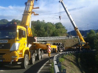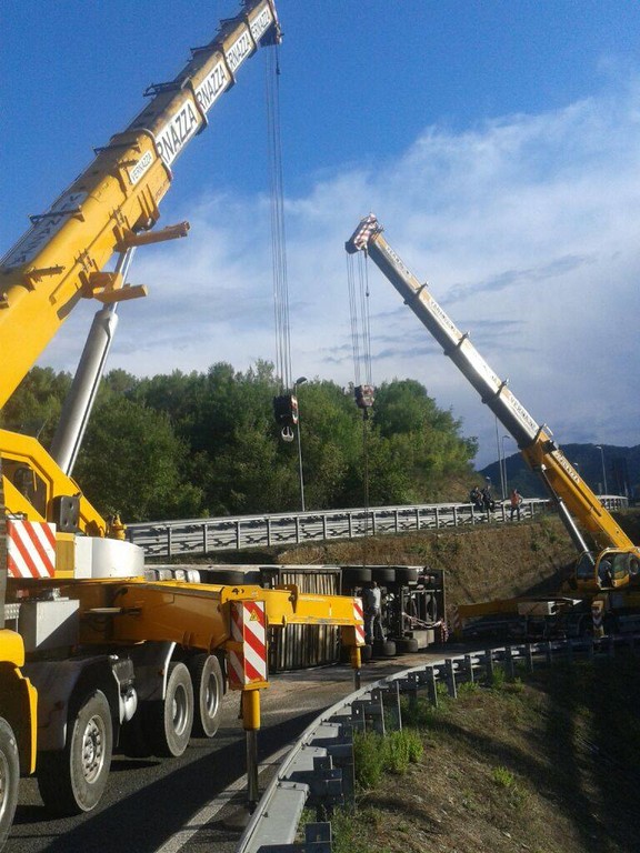 Villanova d'Albenga: in atto le operazioni per la rimozione del camion sulla rampa dell'aurelia bis