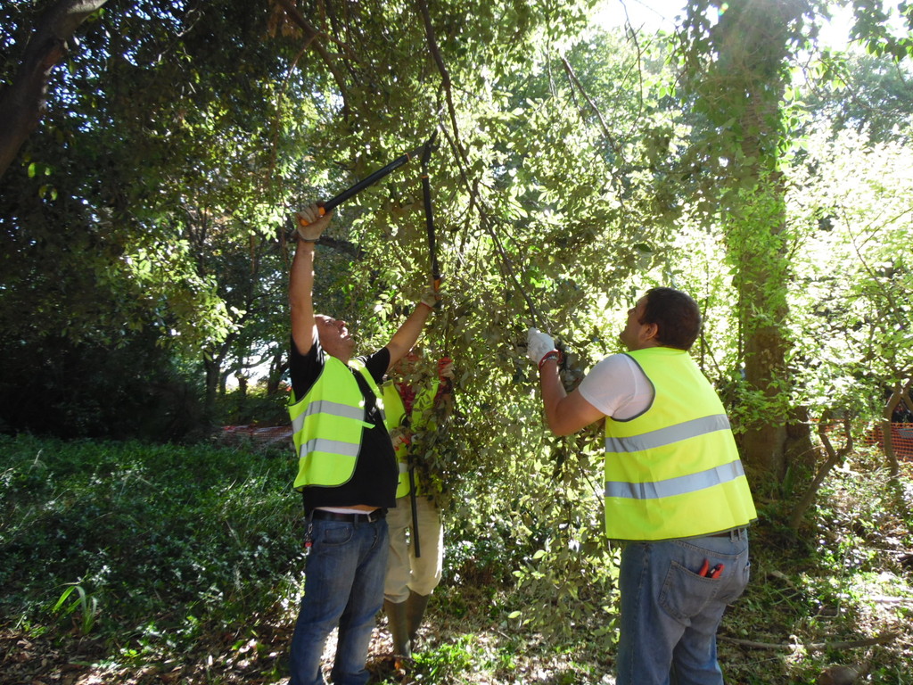 Le operazioni di pulitura (arbusti, erbacce, rifiuti) sono state coordinate dalla Società Multiservizi che ha fornito gli strumenti tra cui una ruspa e un trattore, con il supporto di operatori volontari.