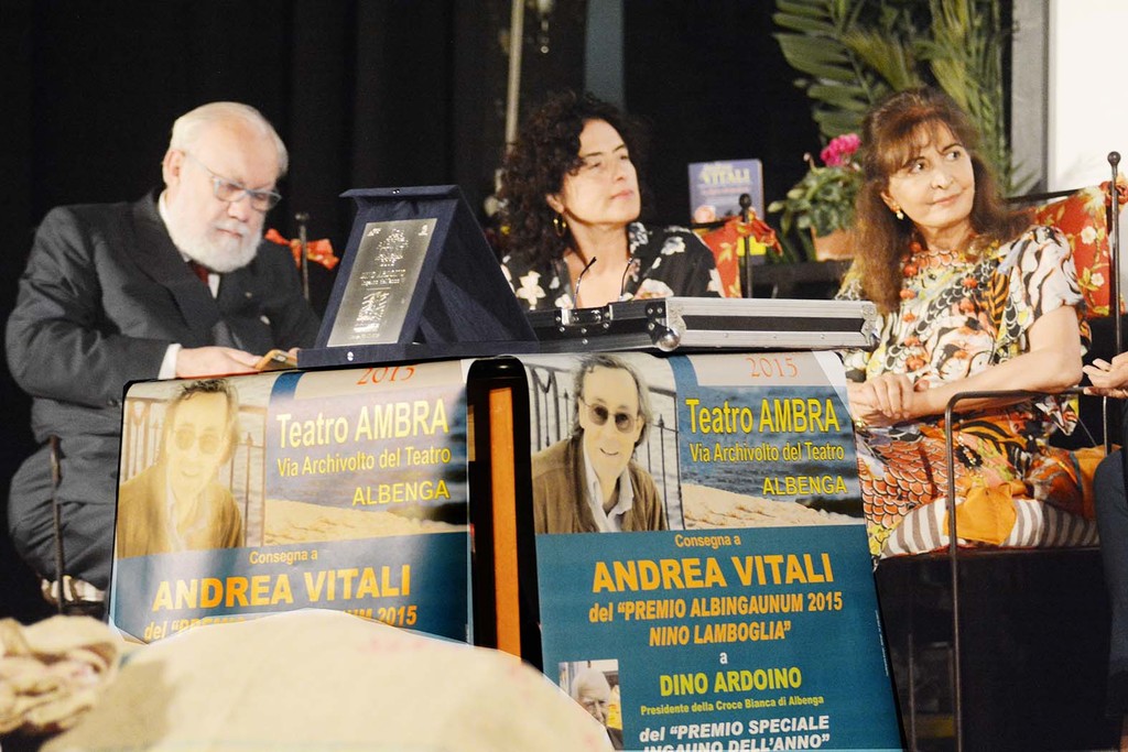 Due premi conferiti nella serata di ieri presso il Teatro Ambra di Albenga: il premio letterario Albingaunum a Andrea Vitali, medico scrittore dallo stile allegro e frizzante che ha conquistato il parere del pubblico che lo ha votato e l’ingauno dell’anno , titolo consegnato a Dino Ardoino storico Presidente della Croce Bianca di Albenga che, nella sua vita passata in croce Bianca si è sempre adoperato per il volontariato e per il bene altrui.