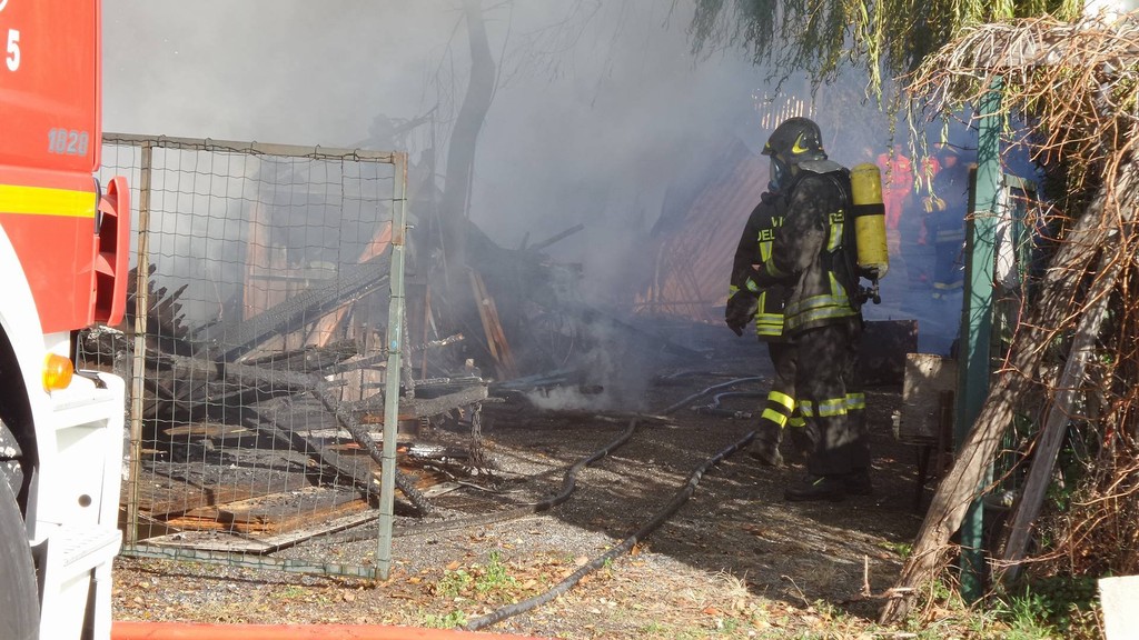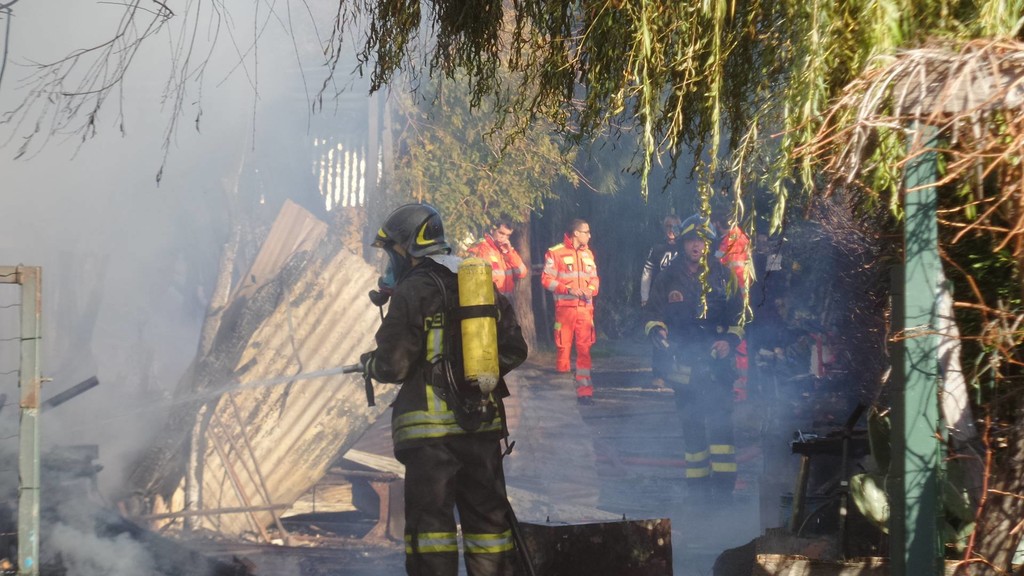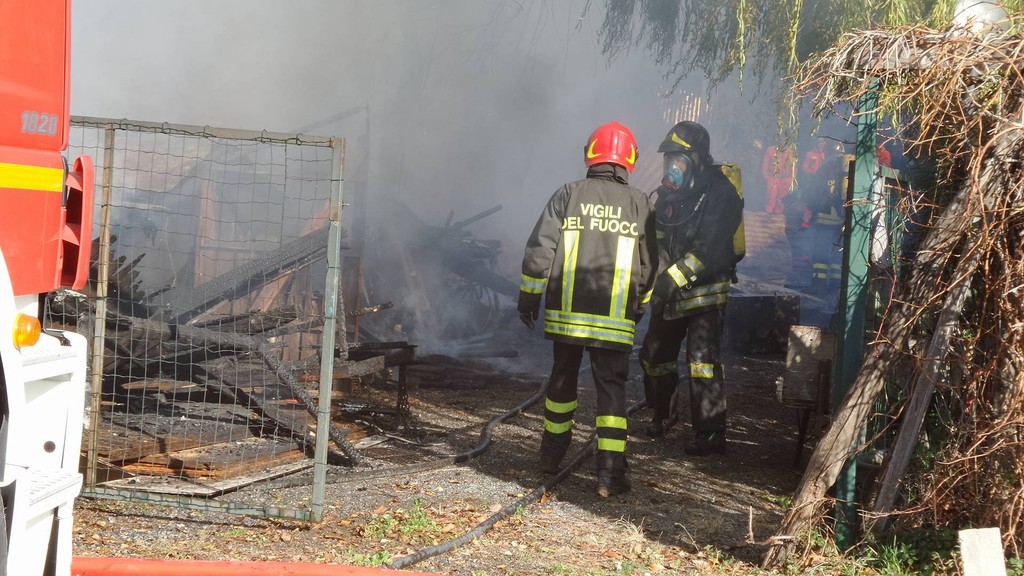 Incendio nella frazione di Vadino ad Albenga. Secondo le prime informazioni sembra che abbiano preso fuoco una rimessa degli attrezzi al campeggio Lungomare, nei pressi della foce del Centa.