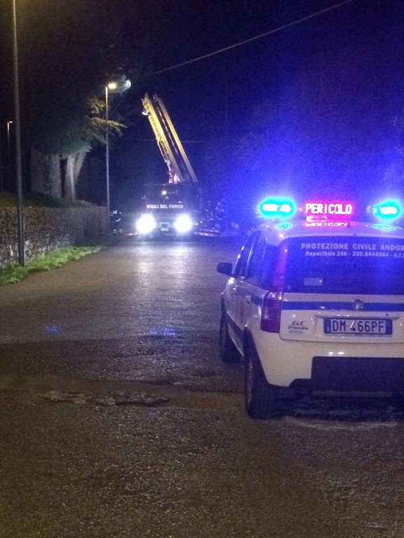 Tagliato nella notte un cipresso pericolante. Intervento della Protezione Civile di Andora e Vigili del Fuoco in perfetta collaborazione per la sicurezza dei cittadini -Foto Intervento