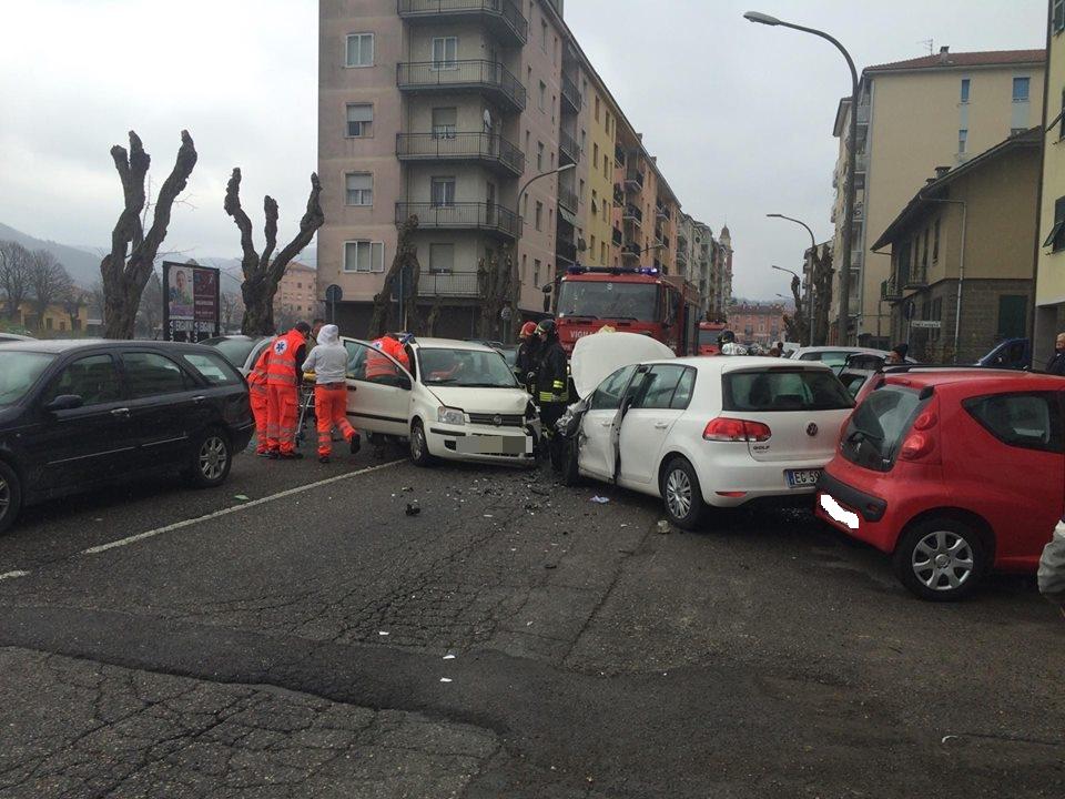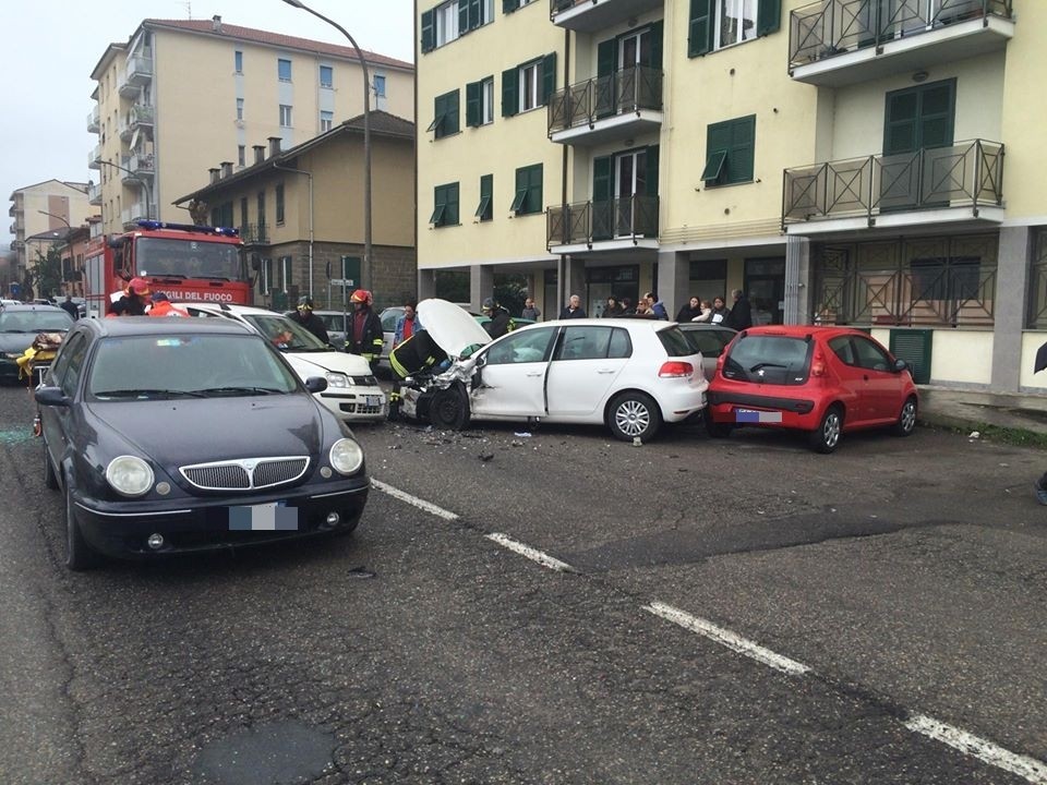 Scontro tra vetture a Cairo Montenotte in corso Brigate Partigiane
