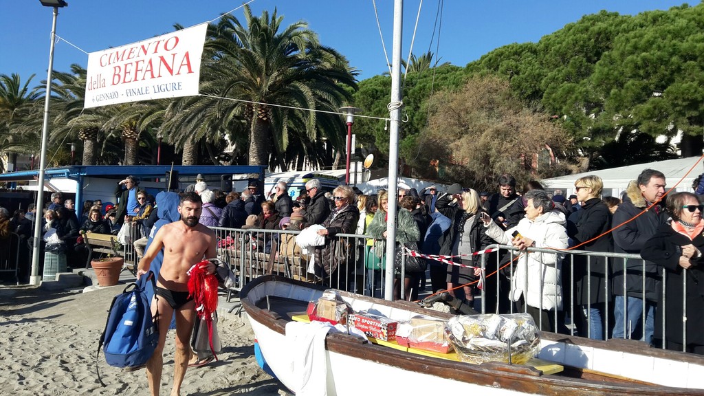 A Finale Ligure tradizionale Cimento della Befana da record. Questa mattina si sono tuffati in mare, dalla spiaggia del "Rione dei Neri", 219 nuotatori del tempo avverso. Nello specifico hanno preso parte all'evento 112 maschi, 56 femmine e 51 facenti parte dei gruppi.