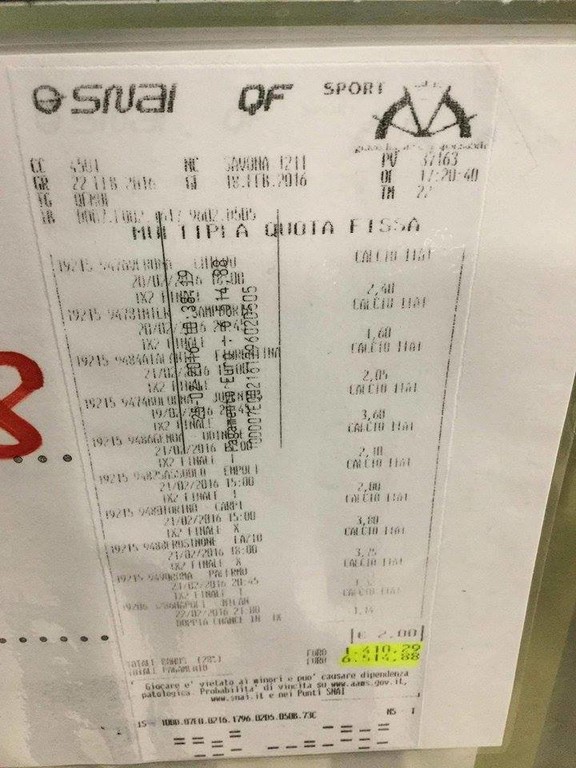 Sono sempre più le offerte di gioco "LIVE" sui principali avvenimenti sportivi in diretta televisiva. Che le novita' portino fortuna lo dimostra la schedina da 2 euro che nello scorso week end ha premiato un fortunato scommettitore il quale, azzeccando la colonna vincente della serie A, ha intascato oltre 6,500 Euro.