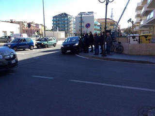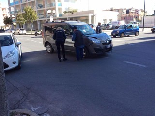 Incidente in via Nino Bixio ad Albenga, ad essere coinvolte nello scontro una Opel grigia e una Peugeot blu.