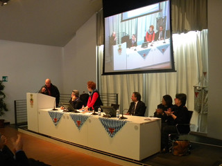 La cerimonia, alla presenza del Sindaco Federico Berruti, delle autorità cittadine civili e militari, associazioni e studenti di diversi istituti savonesi e della provincia, è proseguita presso la Sala della Sibilla con una serie di interventi conclusi dal Presidente nazionale ANED Dario Venegoni, dopo che la presidente dell'ANED di Savona Maria Bolla aveva aperto la mattinata di commemorazione e di approfondimento con il suo intervento introduttivo.