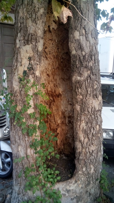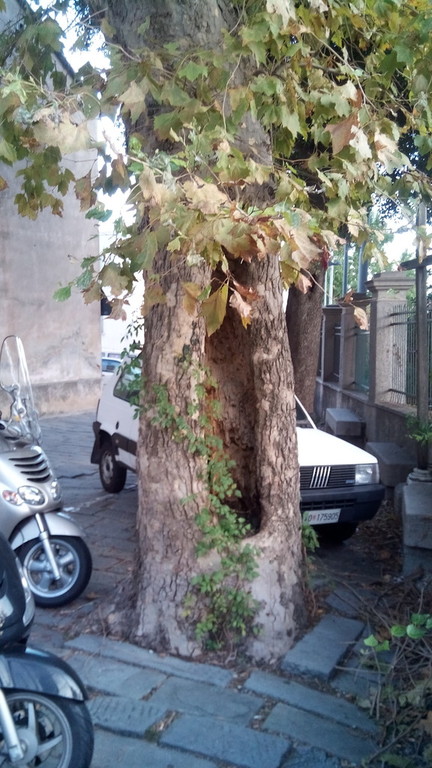 La risposta ancora non pare essere arrivata e nessun provvedimento pare essere stato fatto sull’albero che, come da foto allegate, risulta presentare una profonda cavità nel tronco.