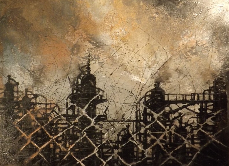 La grande questione della rifunzionalizzazione di quei siti, magari come centri commerciali, o di altra destinazione comunque figlia della “gentrificazione” del nostro tempo, pone all’artista grandi quesiti: estetici, storici, anche politici. Si può cambiare di segno questo passato, o addirittura dimenticarlo? Possiamo crederci fortunati e ricchi per non aver più a che fare col lavoro massivo di fabbrica? E’ veramente e solo oro colato il superamento dell’economia di produzione e l’arrivo alla terziarizzazione di massa?