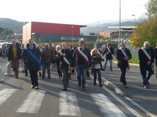 Piaggio di Villanova d'Albenga, i sindaci del comprensorio sfilano accanto ai lavoratori per chiedere il rispetto degli accordi