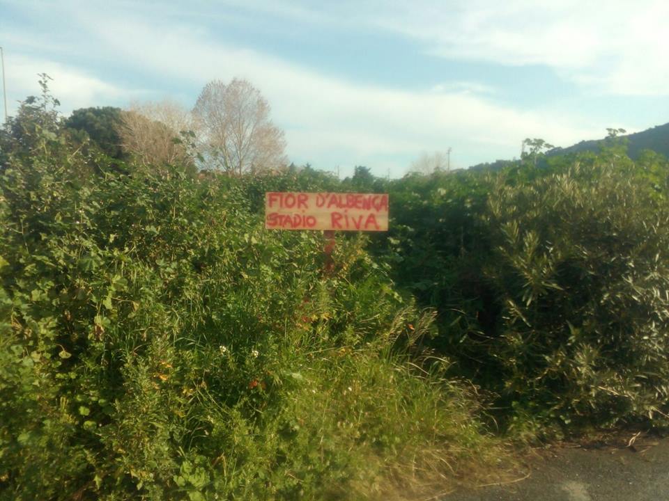 Fior d’Albenga 2016 allo Stadio Riva di Albenga, questo l’ironico, ma con un leggero velo di amarezza, cartello apparso sul cumulo di terra di fronte allo Stadio Riva di Albenga in occasione dell’alluvione 2014 e mai più rimosso.