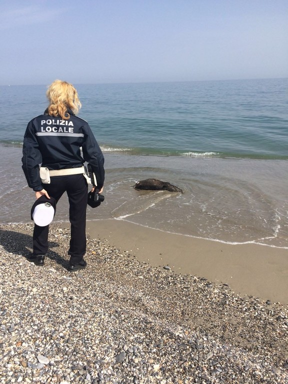 Trovato un cinghiale morto sulle spiagge di Ceriale. Gli agenti della Polizia Municipale sono intervenuti sul lido vicino al molo San Sebastiano, dove era stata segnalata la presenza dell'animale deceduto.